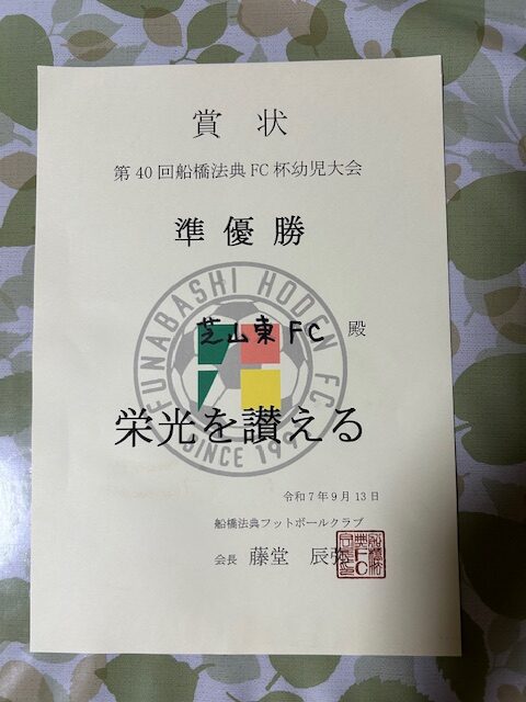 9月13日グラスポで開催された第40回船橋法典FC杯幼児大会で準優勝し、銀メダルをもらいました。