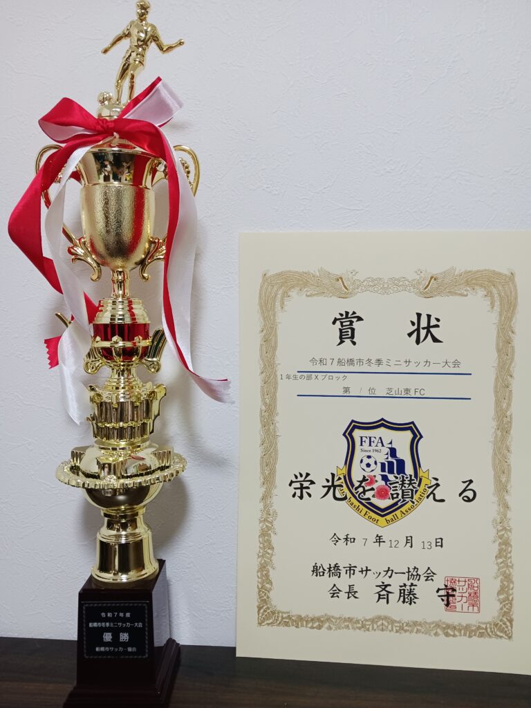12月13日に行われた船橋市冬季ミニサッカー大会1年生の部にて、Xブロック優勝を果たし、夏季の優勝に続き、夏冬連覇となりました。おめでとう!!